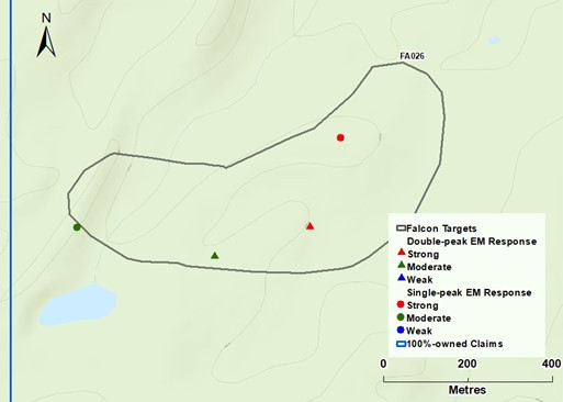 Target FA026 is represented by strong isolated EM responses that are entirely on land (Figure 4). There is a strong magnetic gradient on the west side of the target. A prospecting and mapping program is currently planned for FA026.