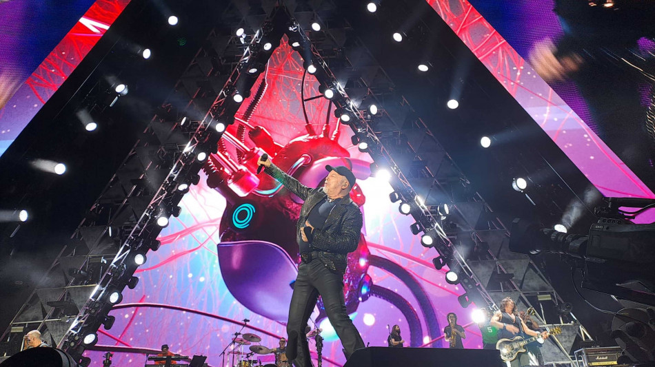 (di Vincenzo Chiumarulo) "Incredibile romantico", il popolo del Komandante sembra essere rimasto l'unico a credere in un mondo migliore, quello che il rock, sfacciato e sincero, suona sotto il cielo di Bari dove ieri in 50mila si sono incontrati per la prima delle quattro date, rigorosamente sold out, al San Nicola. Un rito collettivo che regala un'emozione chiamata Vasco Rossi. Le navette che partono dalla stazione centrale sono palchi che camminano. Stipati, birre scaldate dal sole tra le mani, i fan di Vasco cominciano a cantare nei bus che attraversano la città diretti verso la meta. Vengono da ogni parte d'Italia, sono svariate generazioni. "Tu quanti ne hai visti di concerti quest'anno? Non dirmi che è il primo", domandano, "Io li ho visti tutti". Il San Nicola, l'astronave come lo chiamano tutti , accoglie gli 'alieni' che illuminano la notte con le luci dei telefonini. Qualcuno, che aspetta da ore sotto il sole stemperato da una leggera pioggia nel pomeriggio, sta per svenire, si sente male, ma non vuol essere portato via dal posto sotto il palco che si è guadagnato col sudore. "Curatemi qui, mi promettete che mi riportate dove sono?", si assicurano prima di salire in barella. Moltissimi lo hanno atteso nelle tende per giorni sull'asfalto rovente intorno allo stadio. Uno sbuffo di fumo annuncia il suo arrivo. La folla 'schiaffeggia' le transenne che la separano dall'idolo. Vasco sale dagli inferi per portare i suoi fan dritti in paradiso. "Benvenuti - dice - questo è il concerto più potente dell'universo, benvenuti al primo concerto del poker di Bari" che fino al 30 giugno richiamerà 200mila persone per i "magnifici quattro". Poi, dopo aver citato la premier 'Giorgia' in Asilo republic - "più di prima ci sarà ordine e disciplina" - dedica Gli spari sopra "a tutti i farabutti che governano questo mondo". I supporter di Vasco la guardano "in faccia la verità". Senza di lui le loro "vite sarebbero vuote", ammettono mostrando striscioni e tatuaggi che incidono sulla pelle la fede per il Komandante. Giovani, meno giovani e famiglie con bambini. "Quello che si prova non si può spiegare qui", quando il mega palco diventa tutt'uno con il prato e gli spalti 'conquistati' dalla musica e dalle immagini sugli schermi curvilinei. A lui, del resto, "basta poco", come il suo brano che recita "basta poco per essere intolleranti", a cui Vasco aggiunge "ditelo a Salvini", e poi "basta esser solo un po' ignoranti...come Salvini". Tra i grandi successi canta Rewind, con le donne che si tolgono il reggiseno e danzano 'libere'; Vita spericolata, C'è chi dice no e Bollicine. E quando il Gallo col suo giro di basso rimarca che "Siamo solo noi", il popolo di Vasco ricorda di essere al cospetto dell'autore della migliore canzone rock italiana del secolo. E se la "tristezza si può racchiudere in una canzone", lo stesso non si può fare con la gioia che dona il suo infinito repertorio. Ma tanto, anche quando sul concerto sta per calare il sipario, Vasco promette che "ogni fine è un nuovo inizio". Un'alba chiara che, da tradizione, manda tutti a casa 'sazi', tra i fuochi pirotecnici esplosi dalla sommità del palco, a sognare la prossima volta insieme in uno stadio.