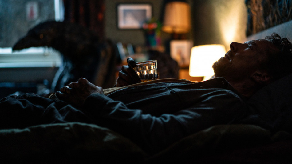Un marito in lutto, padre di due figli, scrittore e disegnatore che si trova nel momento più difficile della sua vita a confrontarsi con la creatura creata per le sue storie. È il personaggio interpretato da Benedict Cumberbatch in L'ombra del corvo, il dramma psicologico con accenti horror di Dylan Southern, in arrivo in sala l'11 dicembre con Adler Entertainment. Il film, che ha debuttato al Sundance ed è passato alla Berlinale fuori concorso, è tratto dal romanzo con elementi autobiografici di Max Porter, uscito nel 2015, Il dolore è una cosa con le piume (edito in Italia da Guanda), diventato qualche anno dopo anche un monologo teatrale adattato da Enda Walsh con protagonista Cillian Murphy. Per Cumberbatch questa è una storia che ha la sua forza "nell'essere così viscerale, ma anche molto reale, è molto densa, puoi in un certo senso sentirla e percepirla. L'elemento dell'horror ti porta immediatamente nella dimensione inquietante nella quale si ritrova il protagonista, il caos del lutto, il caos della vita". "Penso che chiunque abbia vissuto un lutto, anche se non è padre o marito, possa capire quel tipo di emozioni ad ampio spettro, quel dolore bruciante e la sua peculiarità - ha spiegato l'attore presentando il film al Sundance -. Senti un senso di dissociazione, qualcosa che cogli intorno a te ti sembra all'improvviso surreale e inquietante quando vivi quell'assenza. Noi qui esploriamo tutto questo in forma cinematografica utilizzando anche elementi horror e di mistero". Nella storia, l'attore interpreta uno scrittore e disegnatore (dei personaggi non vengono indicati i nomi), autore di graphic novel e padre di due figli ancora bambini (Henry e Richard Boxall, al loro esordio cinematografico), devastato dalla morte improvvisa della moglie. L'uomo fatica a tenere insieme i pezzi della sua vita e a svolgere appieno il suo ruolo di padre. Un percorso che diventa molto più difficile quando si materializza nella sua casa un'oscura e molto molesta presenza che proviene direttamente delle sue storie, un grande Corvo parlante (reso in forma concreta grazie al lavoro fisico di Eric Lampaert e alla voce di David Thewlis), che inizia a tormentare il protagonista dando corpo a tutte le sue paure, difficoltà, inadeguatezze e sensi di colpa.